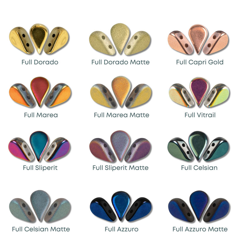 Amos par Puca are 2-hole teardrop-shaped beads with the amazing coatings par Puca is famous for. They fit with various Les Perles par Puca beads to create different design options. Made of Czech pressed glass, these beads are perfect for intricate bead designs, necklace pendants, earrings and more,
