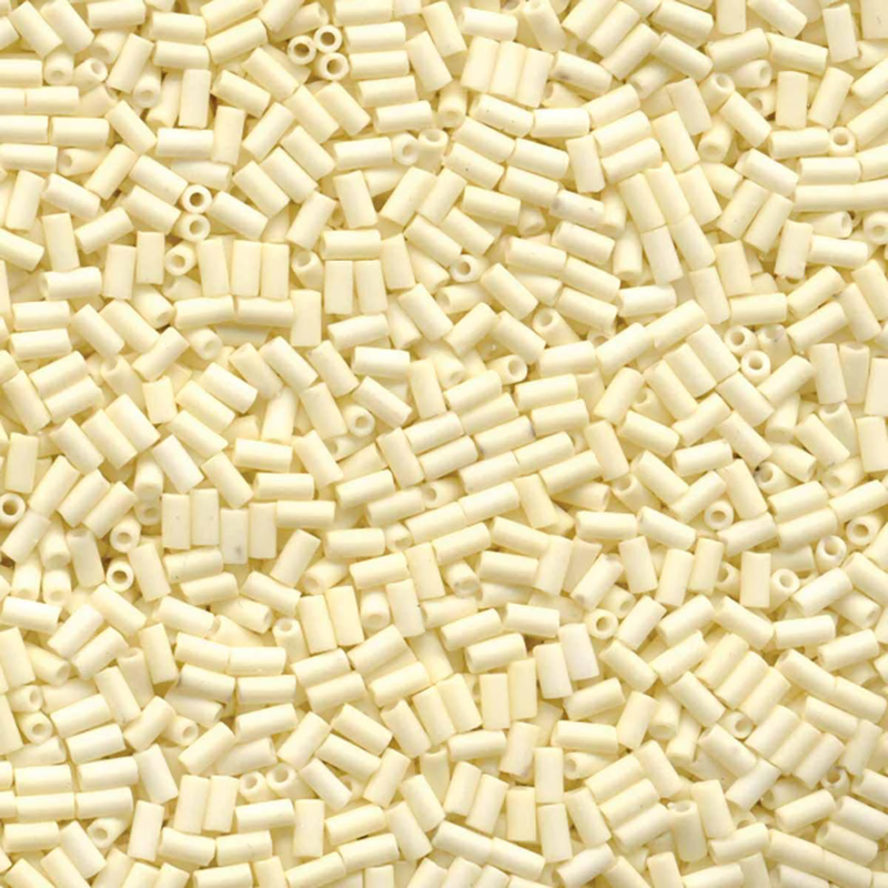 Bugle Beads from Miyuki in Japan are the most precise in the world. They are created from tubular glass which has been carefully tumbled to smooth the edges so they don't cut your thread. You will find the colors and coatings very stable as with all Miyuki products. Try the size 1 or 3mm as spacers for a different look. All sizes work wonderfully in earrings or fringes.