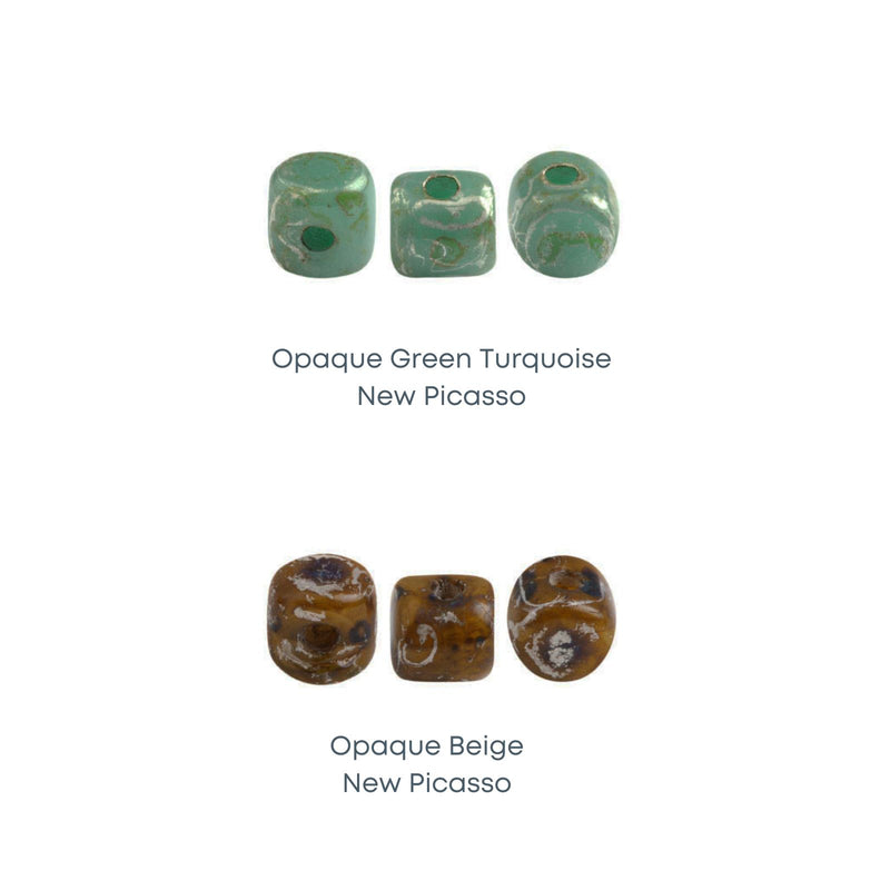 Minos par Puca are small, one-hole beads that you will find incredibly useful whether bead stringing, bead weaving or other forms of jewelry making. Expert coating gives you depth and sheen. Try them nestled in the center of 2 Arcos par Puca for a unique look. Dozens of color options to fit any project. Dozens of free patterns are available here for inspiration. Designed in France and made in the Czech Republic.