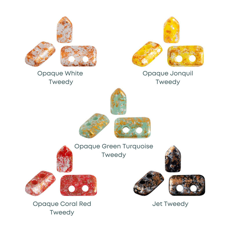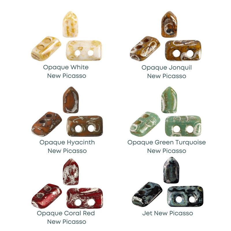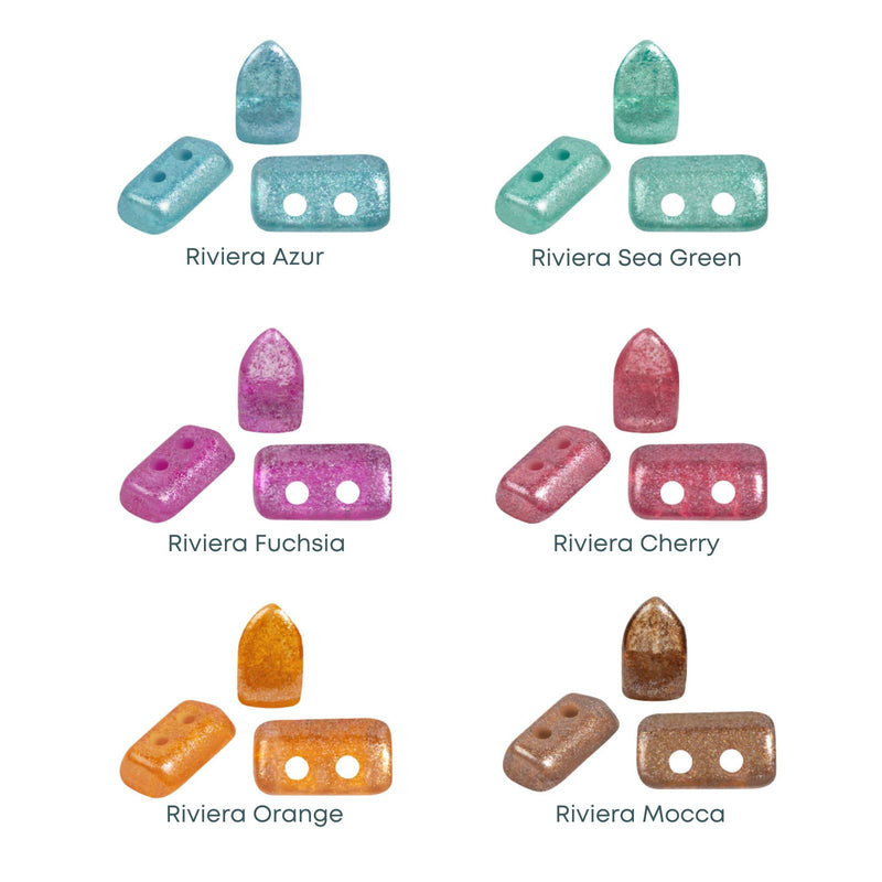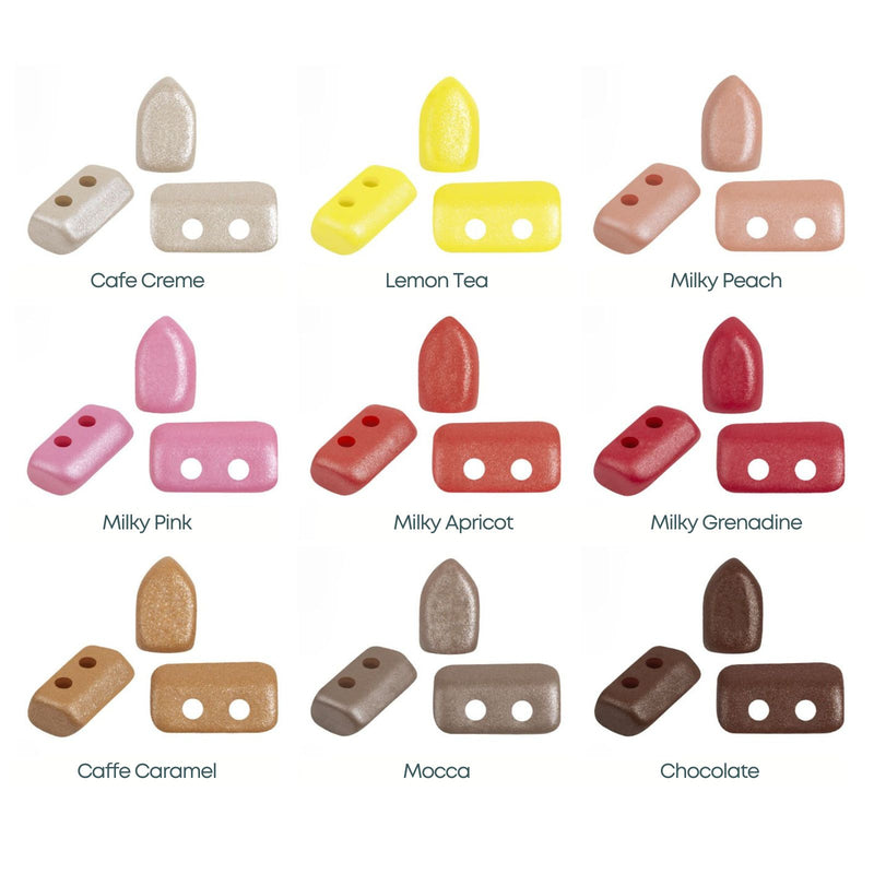 Piros® Beads par Puca® are 2-hole beads beveled with a point on one end and a flat edge on another.. They are great as a bezel, for use in making beaded chains and all kinds of other designs. And, of course, they are designed to marry with the entire par Puca system. Perfect spacers for every design!