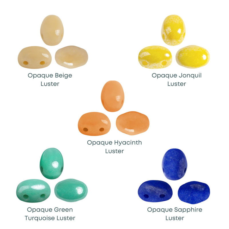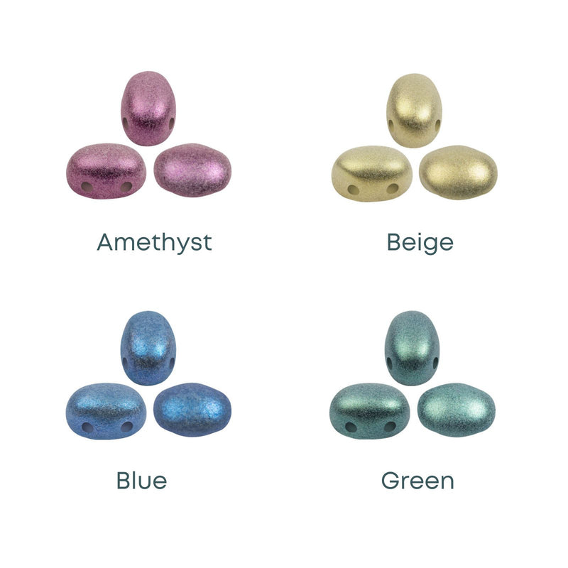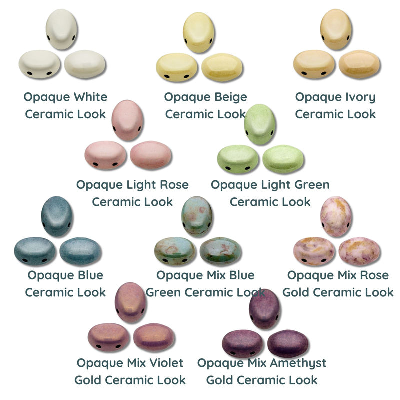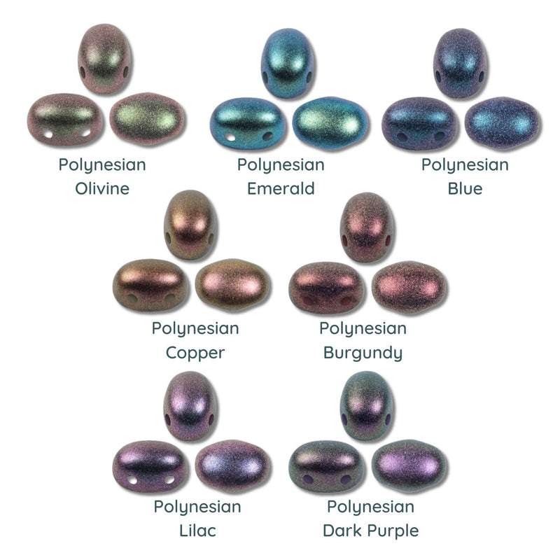 Samos par Puca 2-hole beads are among the most popular in the par Puca line. Their smooth dome-shaped top and slight curves on either side are aesthetically pleasing. The shape is also a perfect companion to most other par Puca beads and other common beads.