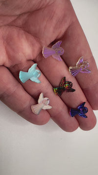 Limited edition Brilliance Angel small pendants or charms in 6 delightful custom coatings by EHA Select. Made in Austria by Swarovski. This is one of the most lovely small components made in recent years with exceptional faceting and color. Supply is severely limited so you will be sure to have a unique item. They are small enough for earrings but also wonderful as a pendant for a delicate necklace or use them as a charm. Each offers classic flashes of other colors: